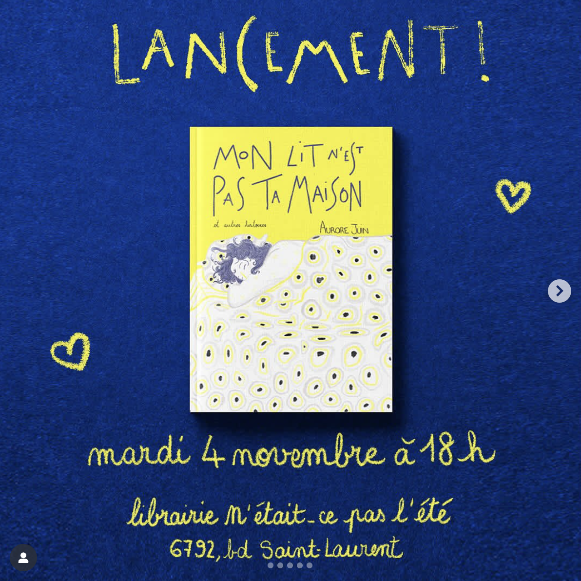 Nov 4 18:00 Lancement de Mon lit n’est pas ta maison Librairie N'était-ce pas l'été 6792 boulevard Saint-Laurent, Montréal Évènement Details Get Directions